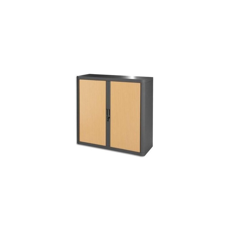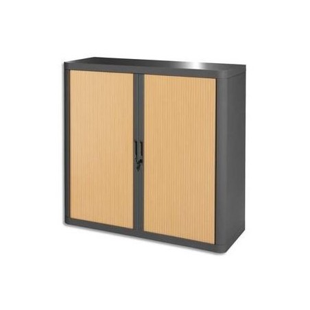 PAPERFLOW Armoire basse démontable EasyOffice corps teinté anthracite et rideau hêtre