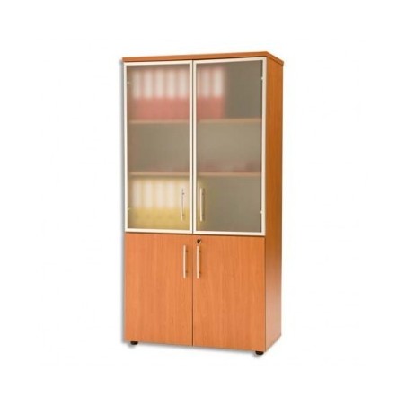 MT INTERNATIONAL Armoire vitrine 1/2 porte pleine -1 tablet fixe + 3 amov - ferm clé mérisier 90x58x180cm