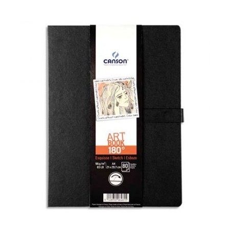 CANSON Carnet de 80 feuilles de papier dessin ART BOOK 180° 96g 8.9 x 14 cm noir