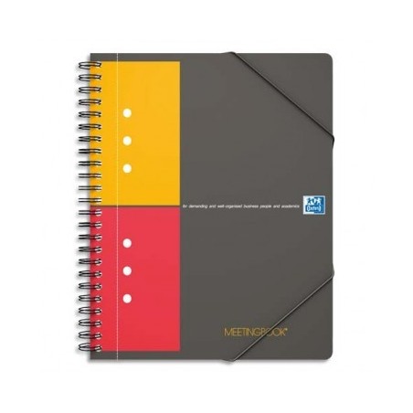 OXFORD Cahier MEETINGBOOK couverture polypropylène gris spirales 160 pages perforées 80g 5x5 21 x 31,8 cm