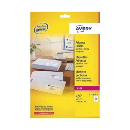AVERY Boîte de 840 étiquettes laser blanc 63,5 x 38,1 mm L7160-40