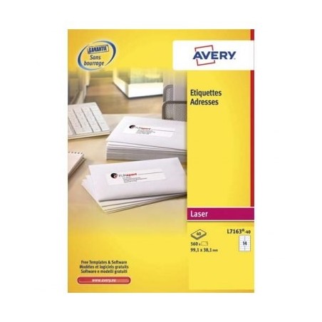 AVERY Boîte de 560 étiquettes laser blanc 99,1 x 38,1 mm L7163-40