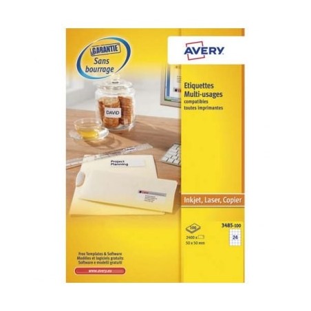 AVERY Boîte de 2400 étiquettes blanches multi-usages 50 x 50 mm 3485-100