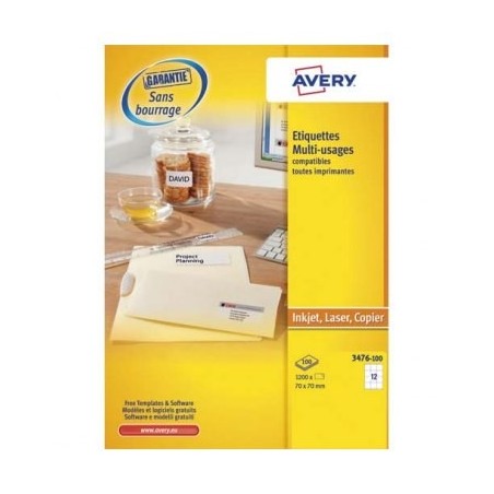 AVERY Boîte de 1200 étiquettes blanches multi-usages 70 x 70 mm 3474-100