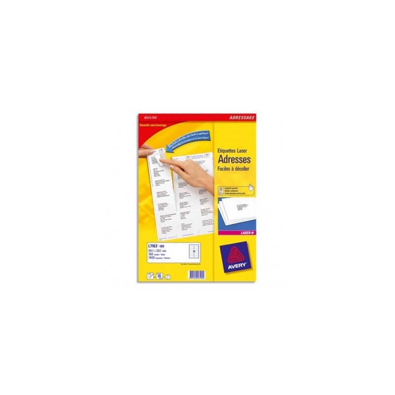 AVERY Boîte de 1600 étiquettes laser blanc 99,1 x 33,9 mm L7162-100
