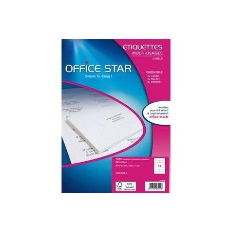 Etiquettes compatibles imprimantes jet d’encre, laser et copieurs. Téléchargez gratuitement le logiciel sur www.office-star.fr. Compatibles tous types d’imprimantes.